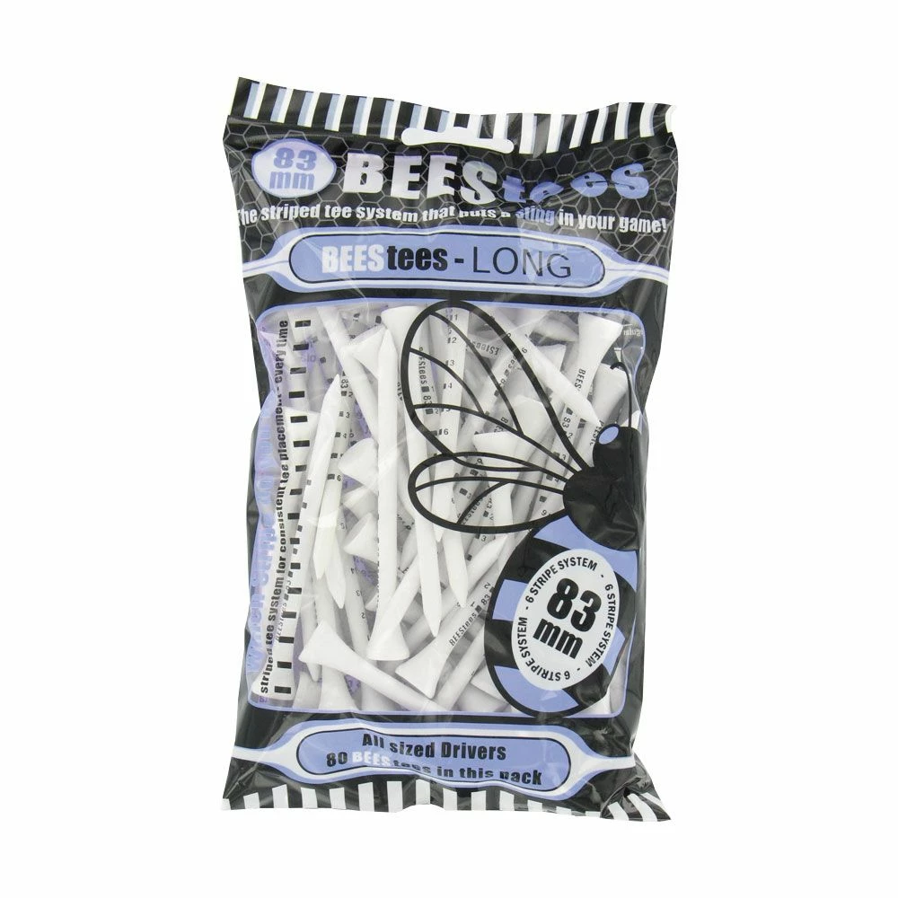 BEESTees are the striped tee system that puts a sting in your game. These BEESTees 83mm Golf Tees are designed for use with a driver and each tee has stripes set the same distance from the top of the tee, and at equal distances down the tee. Each stripe is also numbered, allowing for consistent tee placement in the turf resulting in more consistent shots off the tee.