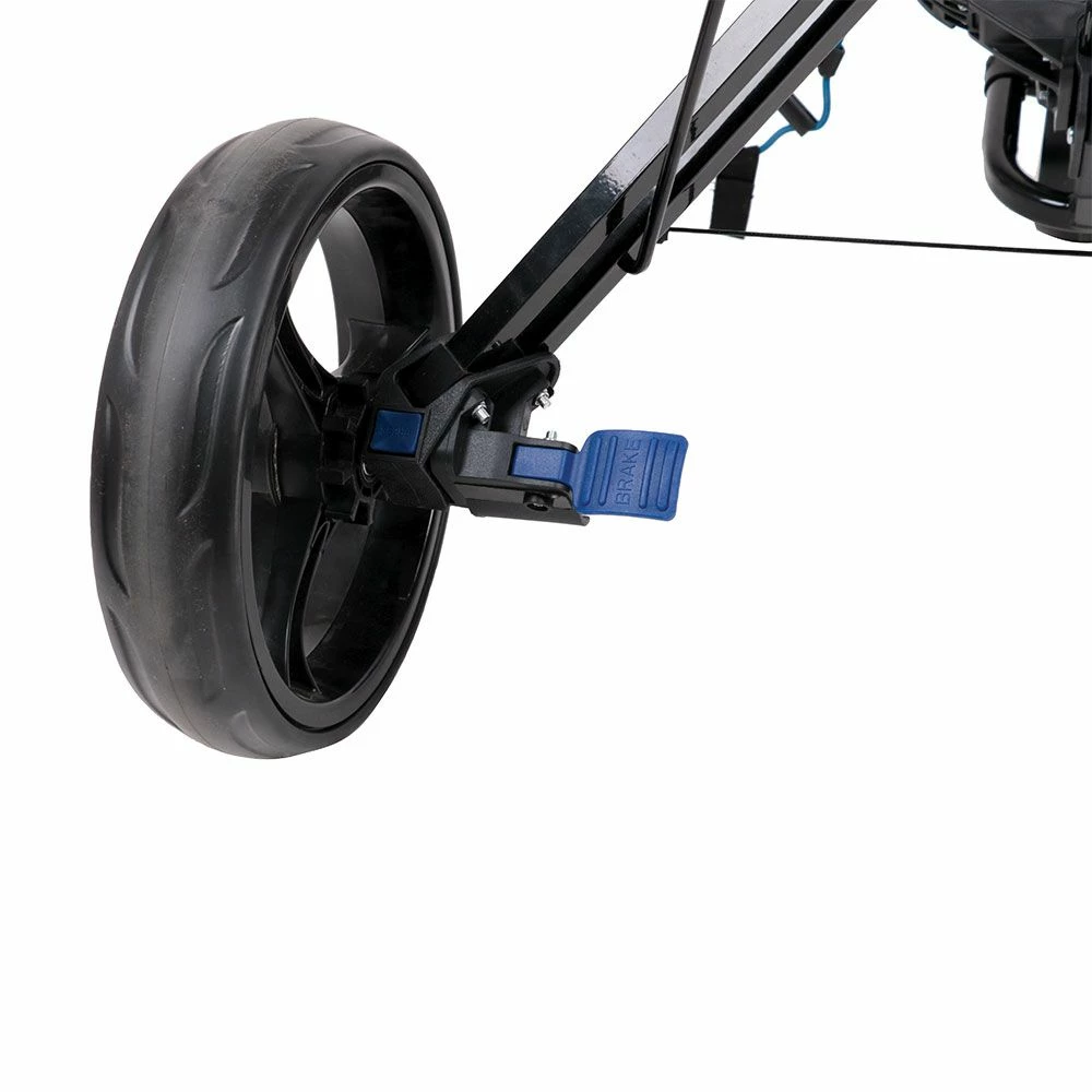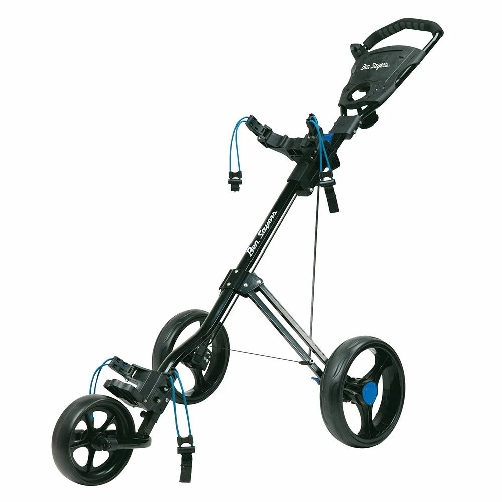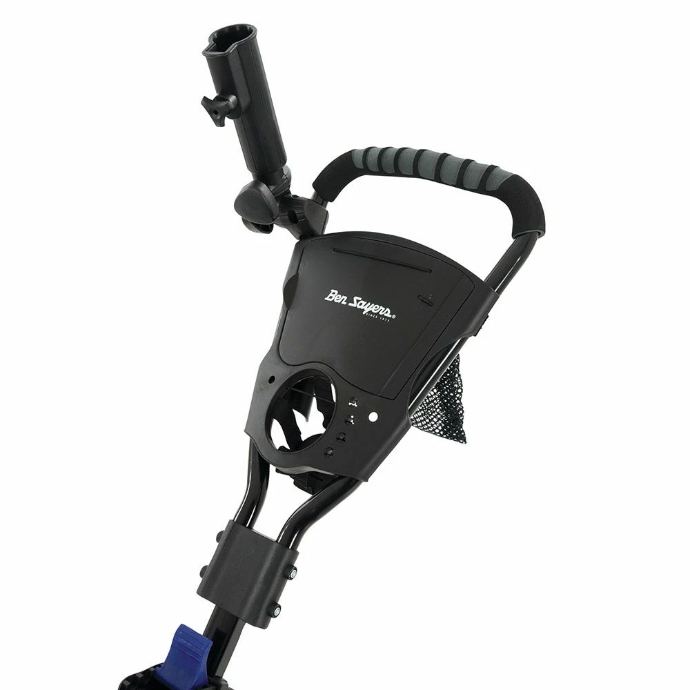 The Ben Sayers D3 Push Golf Trolley features a lightweight, aluminium frame which collapses down in seconds via a quick fold mechanism system. An ergonomic grab handle combines a drinks holder, scorecard holder, tee and ball storage space and a storage section for other accessories.