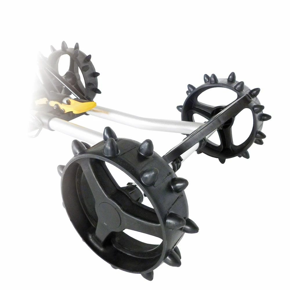 The new Brand Fusion Sun Mountain Micro Cart Hedgehog Kit comes with 4 integrated wheels which help to reduce the impact of your trolley on the golf course.