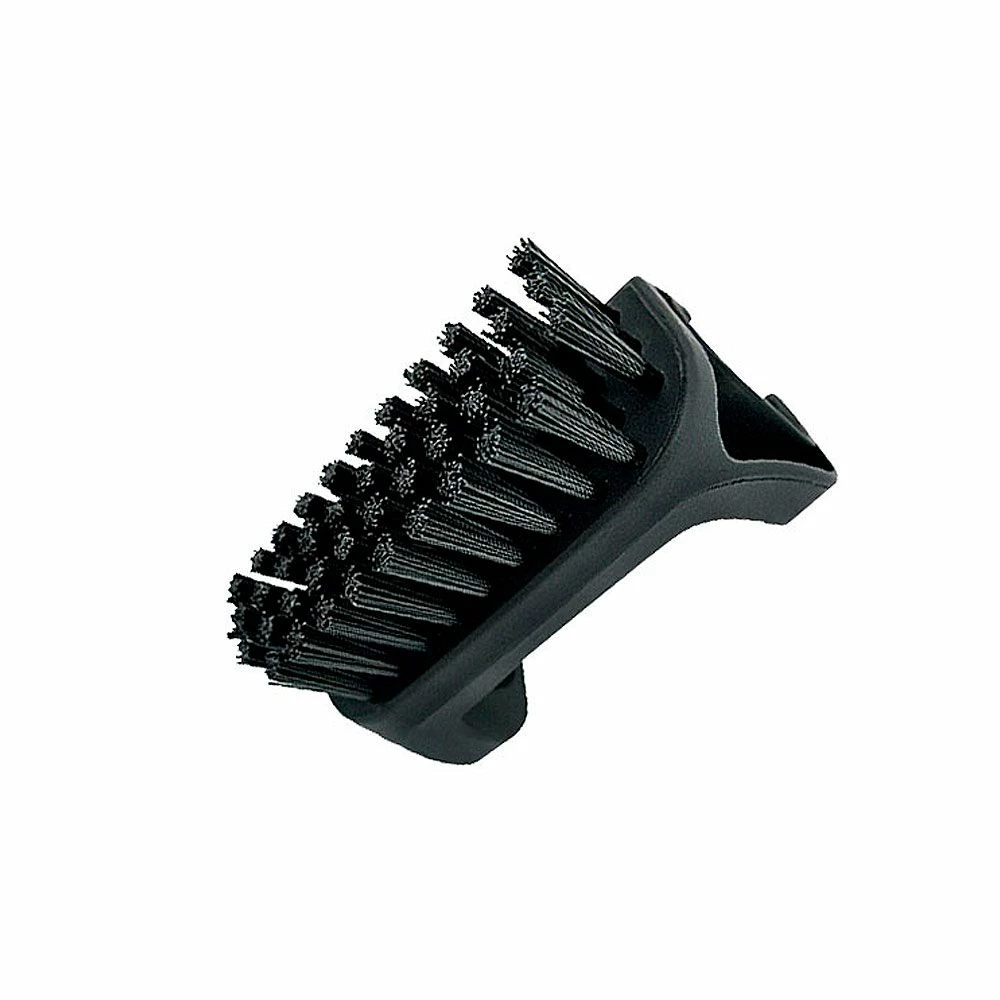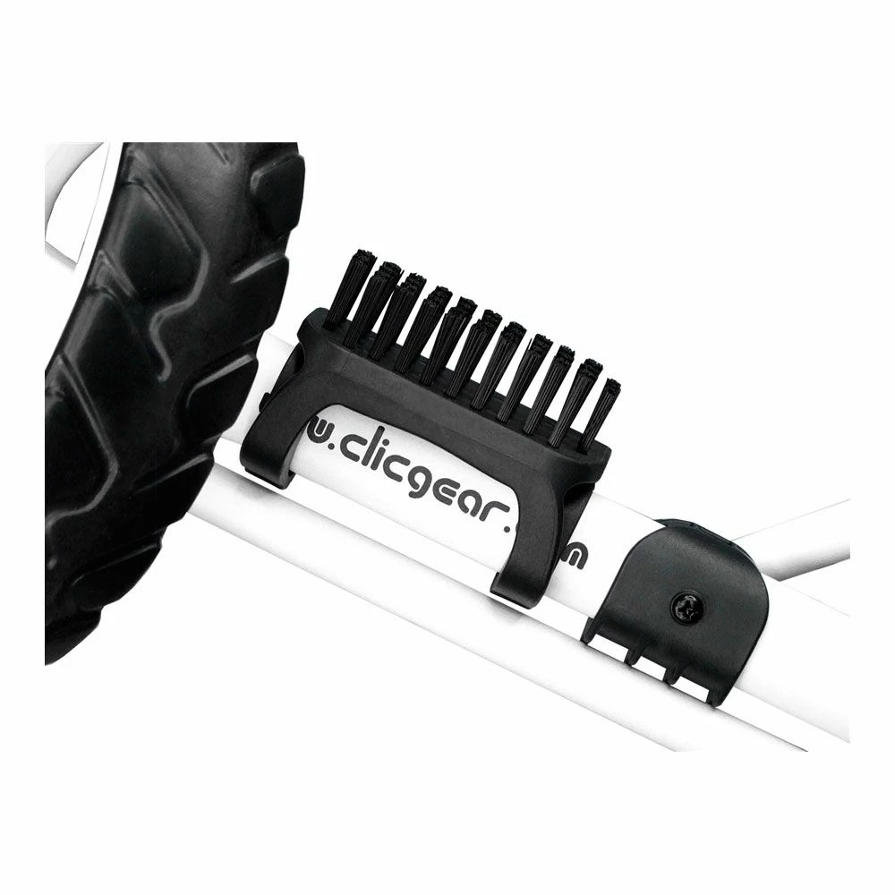 Keep your shoes cleats clean while you walk with the Clicgear® Shoe Brush which clips on easily to the standard wheel strut of your trolley for easy shoe cleaning. Heavy nylon reinforced plastic, with sturdy bristles for cleaning cleats or clubs. Can be attached to both the left and right hand rear wheel struts and can remain on the trolley when folded down.