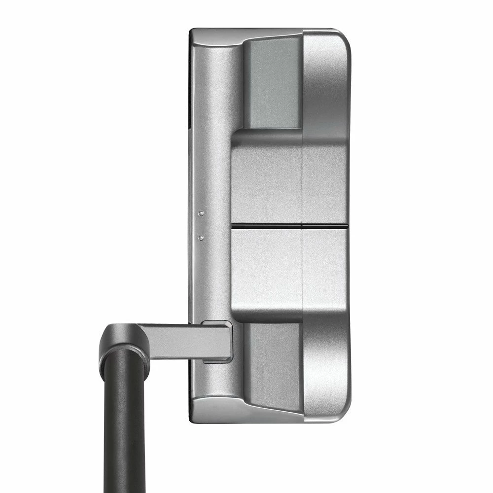 The secret to the Midlock concept is Evenroll’s patented grip design along with a unique long slant hosel. The new Midlock grip features the deepest pistol dimension allowed by the USGA and is positioned sideways which pushes the shaft angle away from the forearm to reduce the typical 9 degrees of loft in as seen in an Armlock putter to just 4 degrees. This comfortable and effective setup produces a much more consistent one-piece putting stroke for reliability at short and long ranges.