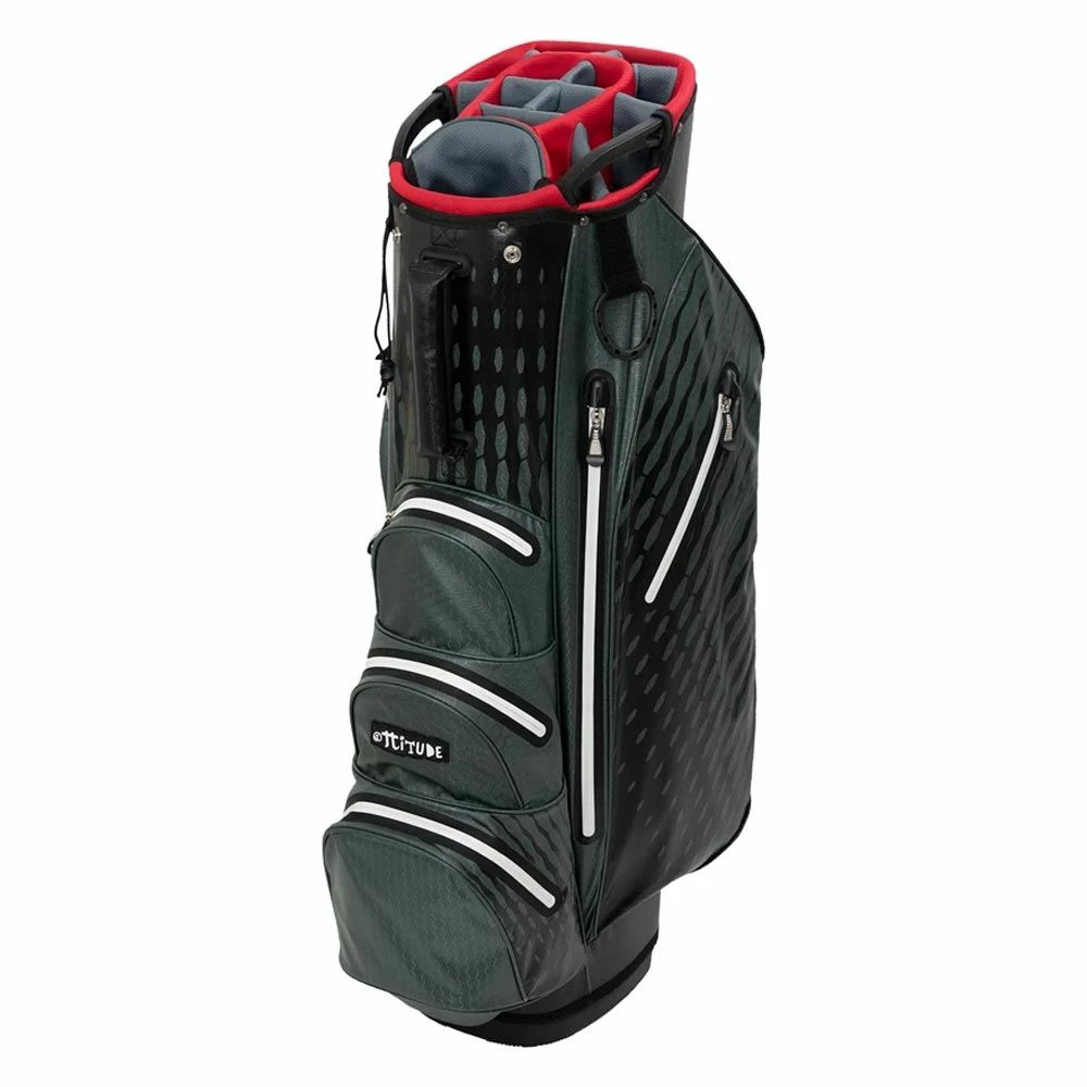 The Lynx Attitude Waterproof Cart Bag features 14 way top dividers with an integrated handle system. The 5 large pockets with a fully seam-sealed construction keeps the water out and waterproof zippers keep stored items dry. Weighing only 2.6kg makes this incredibly lightweight and easy to use around the course.