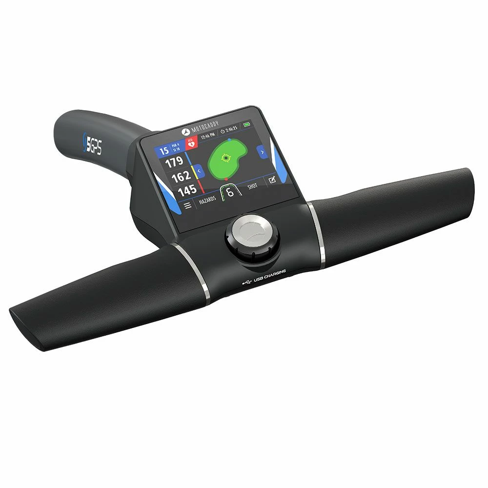 The all-new Motocaddy S5 GPS blends simple 1-step folding with a high-resolution 3.5″ touchscreen offering GPS for over 40,000 pre-loaded courses. Also boasts a cable-free Lithium battery with auto-disconnect and quick-access charging.