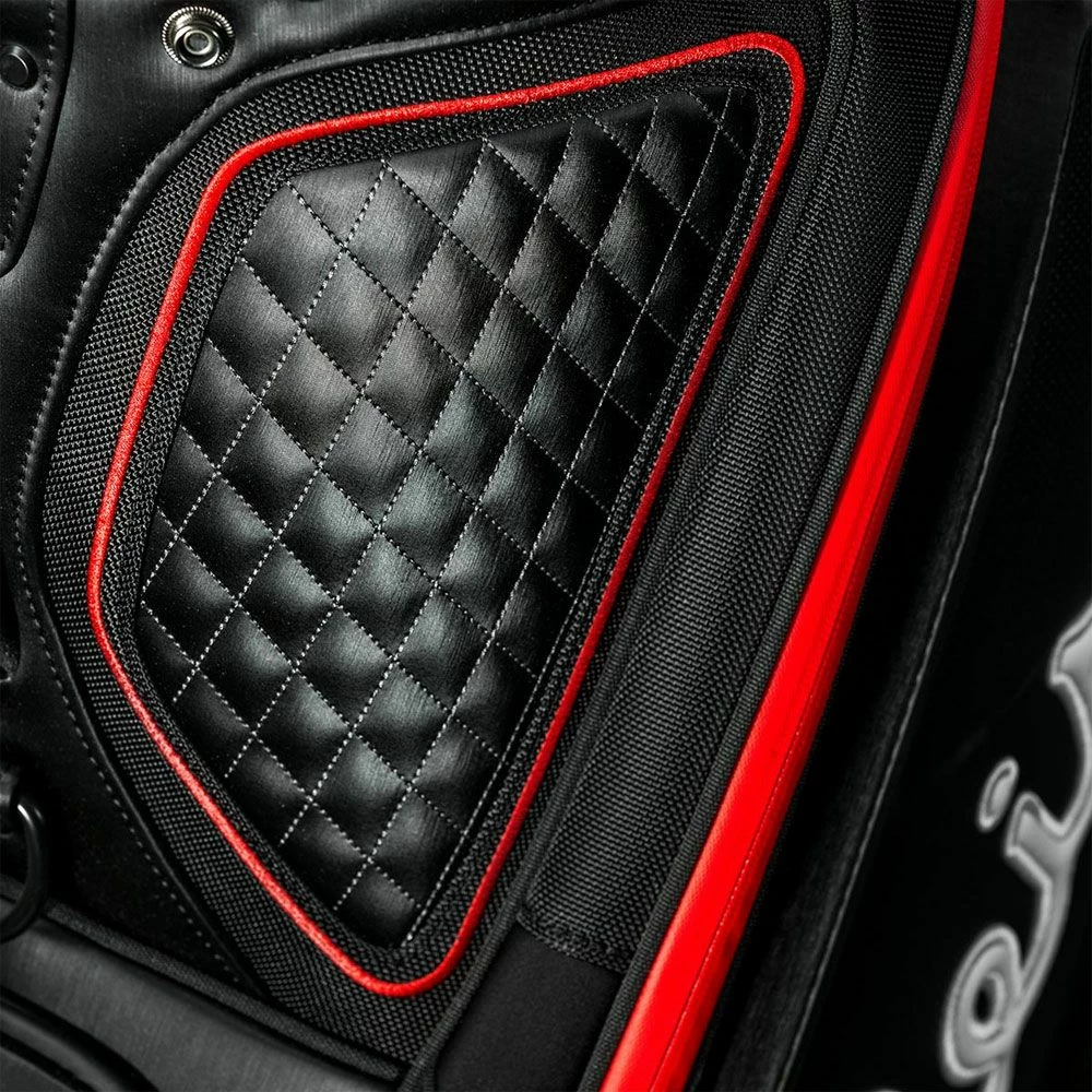 Titleist Tour Bags are used by 150+ Titleist Staff Professionals including the likes of Justin Thomas, Adam Scott, Cameron Smith, Patrick Cantlay and Charley Hoffman. The Tour Bag features premium grade materials and a luxurious quilted design. A five-way velour top cuff with integrated handles makes it easy to separate your clubs and effortlessly manoeuvre your bag. An improved hip pad design and high-density cushioning foam in the proven 3-point single shoulder strap provides the ultimate in comfort, all of which are reimagined in the Titleist brand colours of black, red, and white.