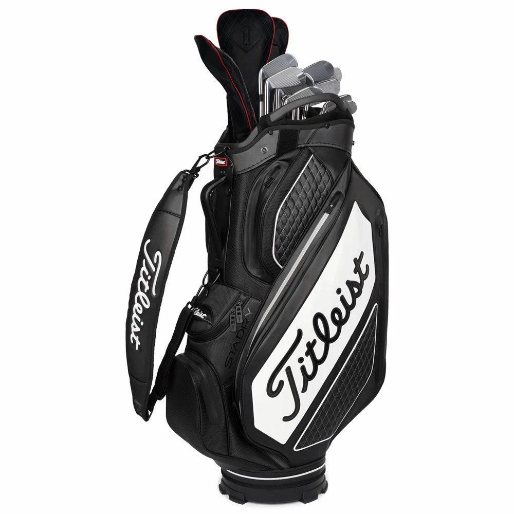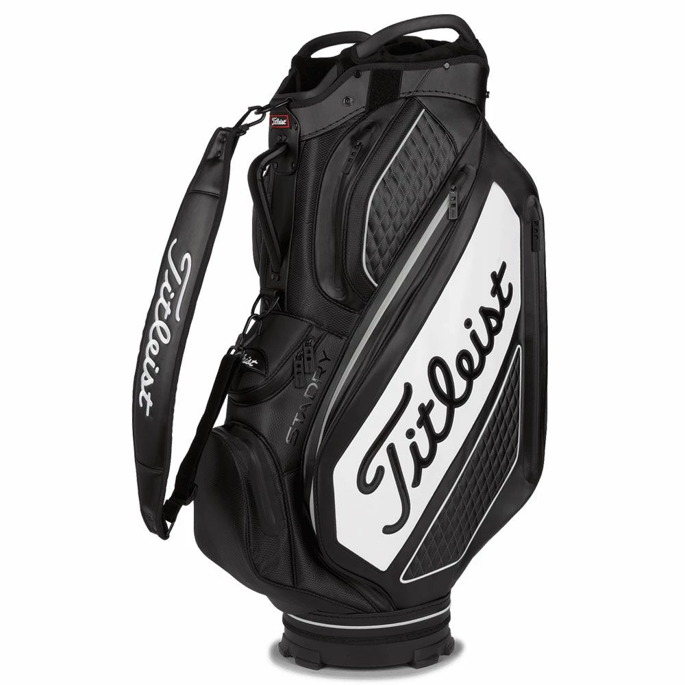 Waterproof technology meets luxury in Titleist’s new Premium Stadry Cart Bag, boasting a sleek black and white colour scheme designed for the all-weather player.